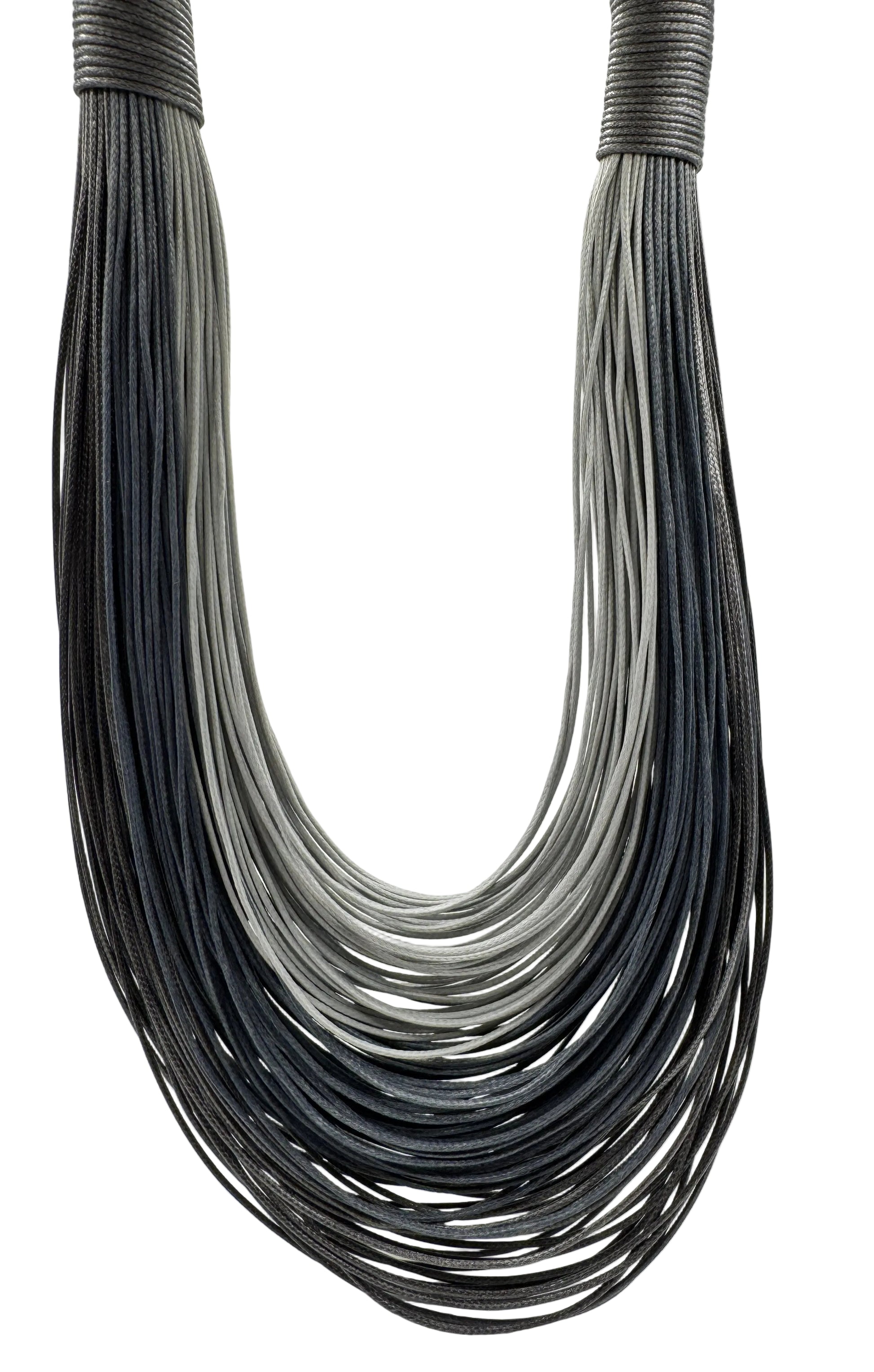The Afrika Necklace in Light & Dark Gray is a refined statement piece designed for everyday elegance. Featuring multiple flowing strands in a soft gradient of gray tones, this necklace creates a layered, fluid silhouette that feels both contemporary and timeless.